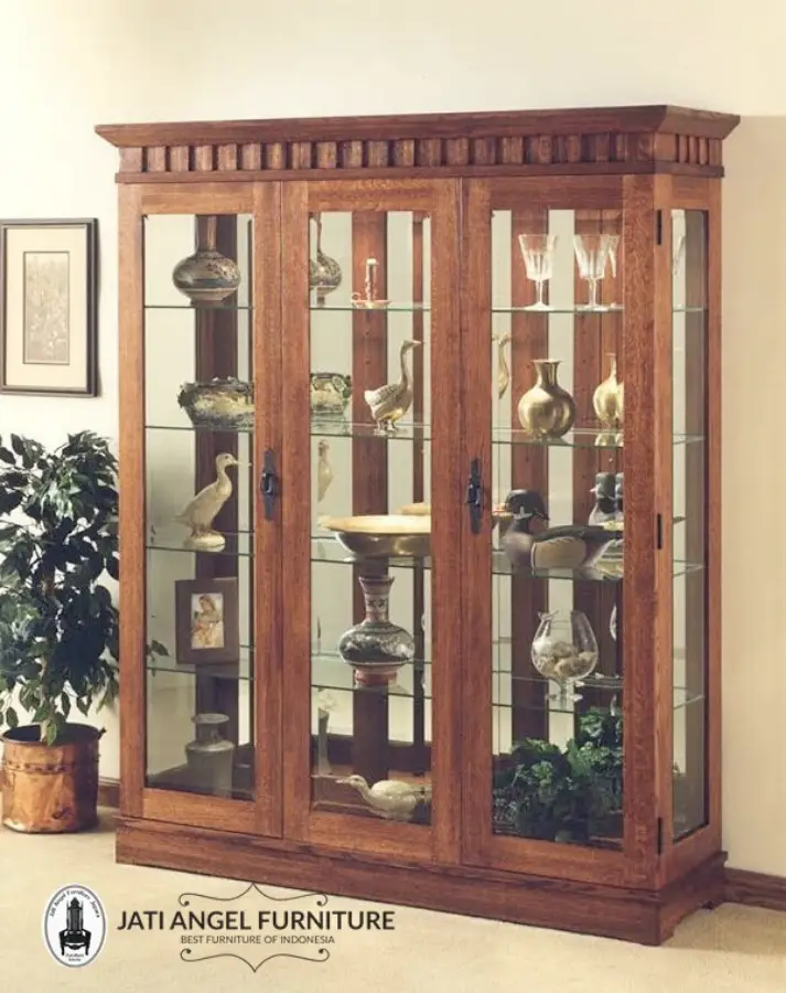 Desain Lemari Hias Jati Klasik Curio 3 Pintu Minimalis Terbaru